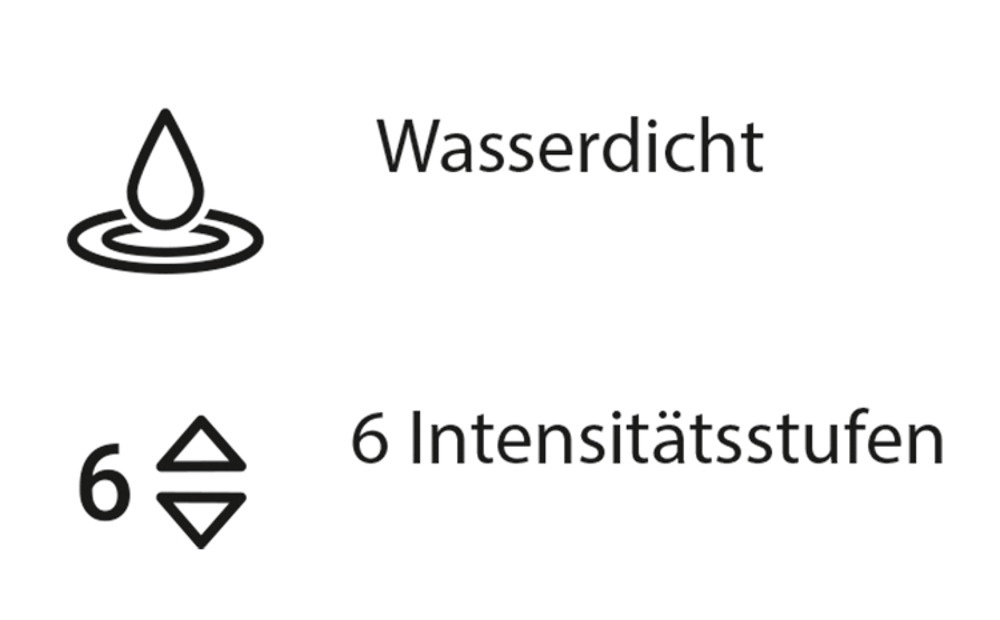 Mit energiesparender Abschaltautomatik: Wird die Intensität über längere Zeit nicht verändert, schaltet sich der Starlet 3 nach 5-10 Minuten (je nach Akkustand) automatisch ab. Dies kann auch einfach überbrückt werden, indem z.B. auf eine der Intensitätsstufen gedrückt wird.